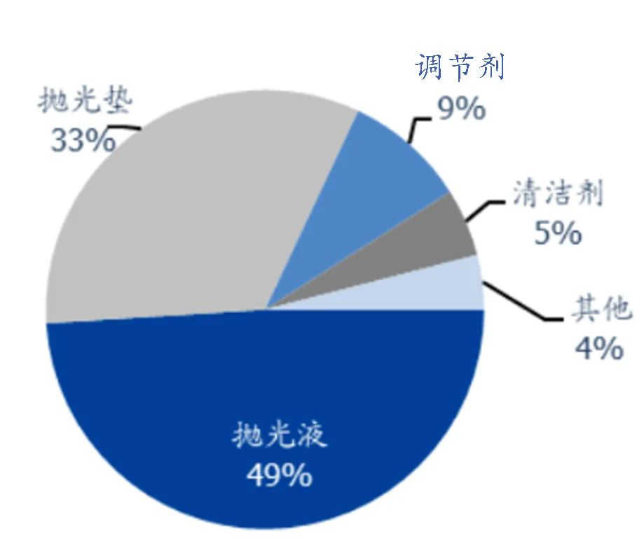 CMP 系统主要材料包括抛光液和抛光垫,分别占据抛光材料成本的 49% 和 33%。其他抛光材料还包括抛光头、研磨盘、检测设备、清洗设备等。